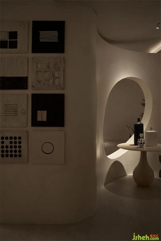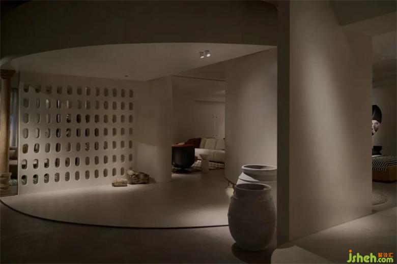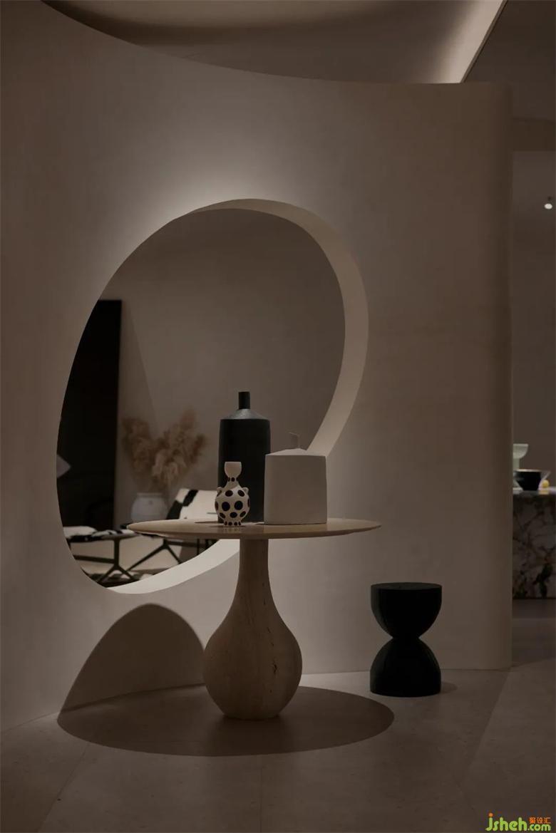 LA.Concept整个展厅分为两部分,前厅为”Living”展出精致生活感的意式轻奢类家具,后场为”Art”也是甲方委托我们设计的区域。