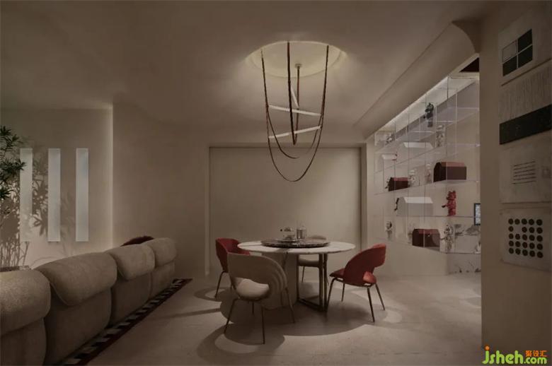 我们致力于寻找现代美学与复古设计之间的完美平衡,家居馆设计空间中将融入更多元的思考和元素。每一个空间都将讲述一个故事,第一个故事,生活在Z时代的时尚小夫妻,一个不再拥有全民样板的世代,喜欢具有时尚感的单品,展厅设计埃及艳后红低调而性感,餐厅背后的亚克力架子上陈列着时尚潮玩,家居馆设计都彰显着TA们对理想生活的期待没有一个标准答案。正如我们的空间一个,这是一个具有包容性、可变性的家具展厅。
