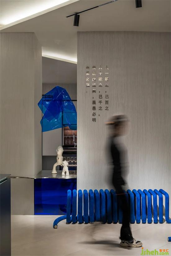 在软装陈列中加入融合的与钢之相比相对柔和但又能融汇切合的一些原创的东西在里面。展厅设计打破传统行业的陈列展示的局限性,以全新的产品体验为内核,结合当代艺术的视觉感官,打造多元化的沉浸式消费体验。