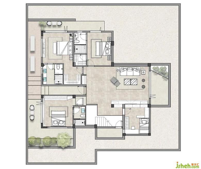 一个独特的空间在空间里的生活体验感尤为重要而我们在想如何再进一步让使用者别墅设计有机会在空间中去思考“动” “乐” “院” “憩” “眠”五个板块是我们对此空间的新定义。