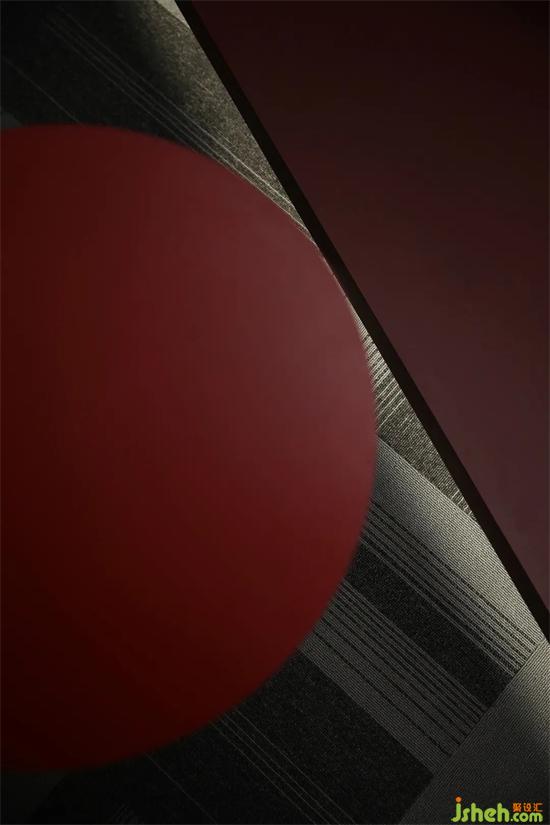 空间之上设计之始,如何将空间赋能与品牌价值,是整个空间设计一以贯之的策略及思考。空间初始,办公位于商场一个转角处,从视觉导向和品牌展示都缺少必要的空间延展性。办公设计以几何切面的设计启发,来源于品牌原始的产品属性——石墨烯原子结构(由碳原子 以sp²杂化轨道组成以蜂巢状晶格的六边型形态),因此空间上以原子结构作设计灵感,热烈的红色贯穿整个空间作视觉引导,有机的将品牌属性植入于空间体系。