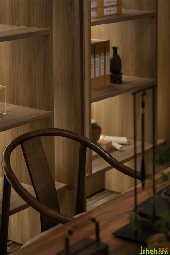 茶道卡座整体定调深沉,接近大地色,纵横呈现三角状的参观廊道采用借光的形式,茶楼设计通道排列众多的光源,借光至卡座,通过卡座玻璃直射光线照亮卡座内部。