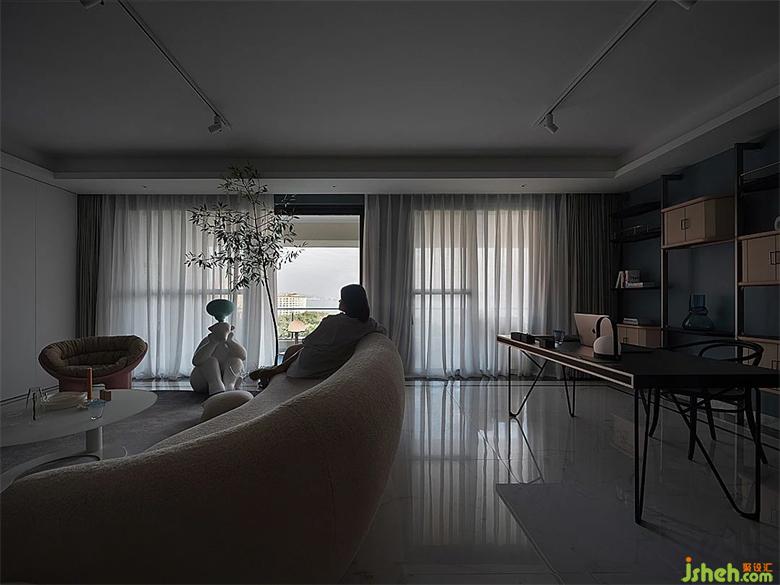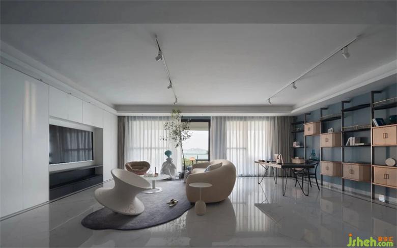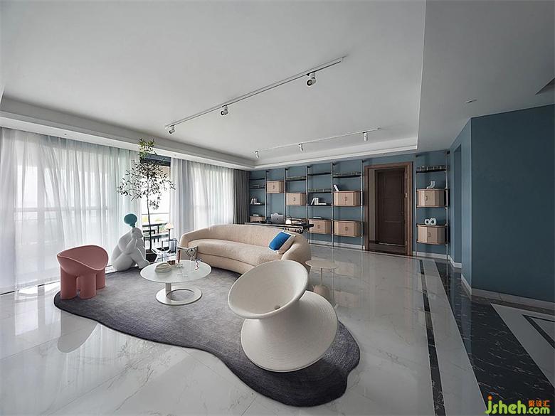 法国设计师Jean Royère设计的“大白熊”优雅的在空间里与它旁边的另一只‘’熊‘’对视,白色MAGIS陀螺椅转啊转或不经意的调皮一下,这样的场景总和美好的童年有关,家装设计空间里蓝色与柔纱色的搭配让我们想到赤裸双脚丫踩在柔软的细沙滩上,蓝色的海水一层又一层打到梦里,我们希望这样轻松的氛围让人能安然入睡,洗去城嚣中的疲惫在面朝大海春暖花开的房子里度过喜悦.悠然的假期