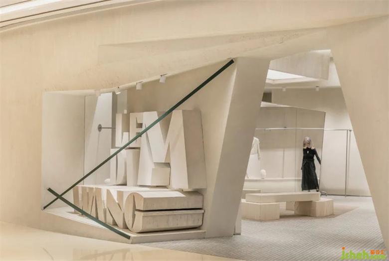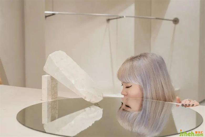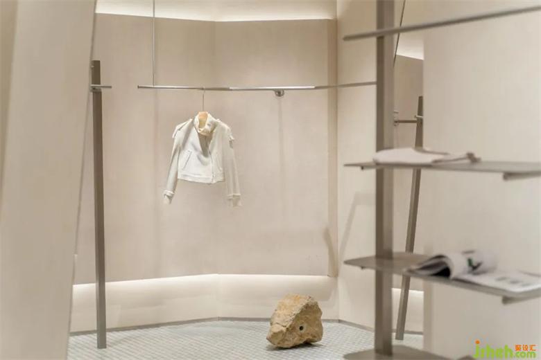 纯手工涂抹细腻的意大利灰泥配合纹理时而均匀,时而粗糙的仿洞石涂料,让空间重回“石器时代”,静态空灵的建筑空间与先锋大胆的剪裁、配色发生划时代与地理的碰撞,店铺设计用反差塑造时尚与高级感。