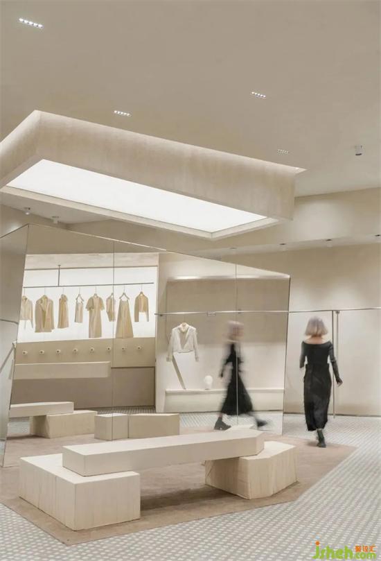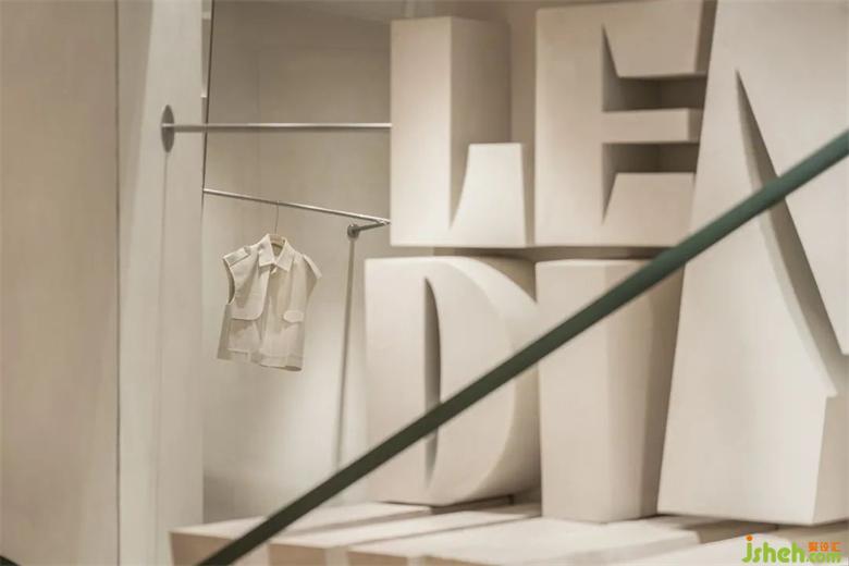 与多数买手店大面积使用金属与水泥材质表达时尚与先锋不同,LEDIM WANG 的空间色是以打版白胚衣而来的大地色。