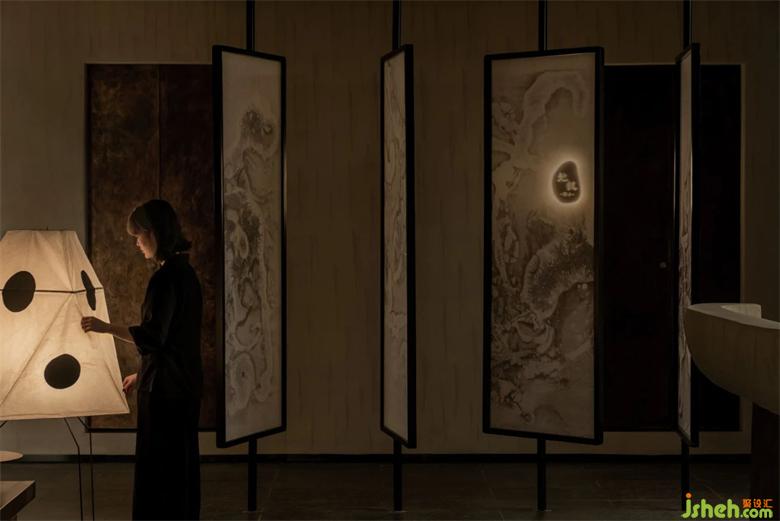 Entering the edge of the space, we can feel the energy brought by the field, expressed through the five senses, such as the pattern we see in the Legend of Mountains and Rivers, the screen presented with water and ink, and the designer's own DIY palace lantern. When we are in the space, we can smell the taste of Chinese medicine. It is a physiotherapy technique that we use to restore traditional Chinese medicine with the traditional Chinese medicine hot pack, so that every person can feel a sense of familiarity and can take off the precautions, which is in line with our space concept. There is no natural daylight in the room, which will make people feel depressed, so we borrowed the daylighting method of classical garden courtyards and used skylight to achieve daylighting.