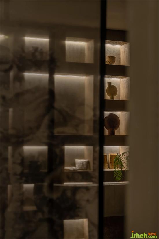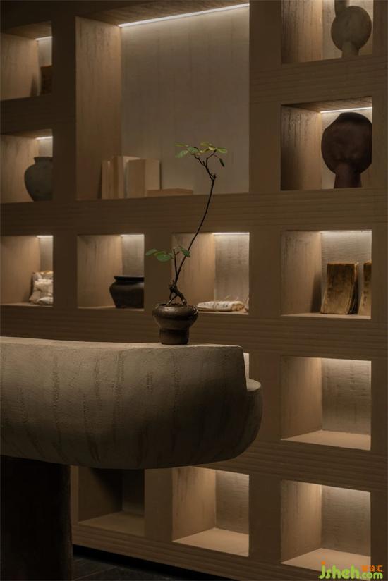 进⼊到空间的⾥边,我们能感受到的场域带来的能量,会所设计通过五感去作表达,⽐如我们看到的⼭海经纹样,⽤⽔墨呈现的屏⻛,以及设计师⾃⼰手绘的宫灯。我们⾛在空间⾥⾯,可以闻到中药的味道,它是我们以调理⽤到的中药热敷包还原传统中药的理疗技法,让每个⻆落都可以感受到⼀种熟悉感,可以卸下防备,正契合了我们的空间理念。会所设计室内没有⾃然采光,会让⼈感到压抑,于是我们借鉴了古典园林四合院的采光⽅式,⽤天光达到采光⽬的。