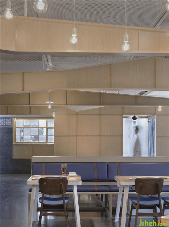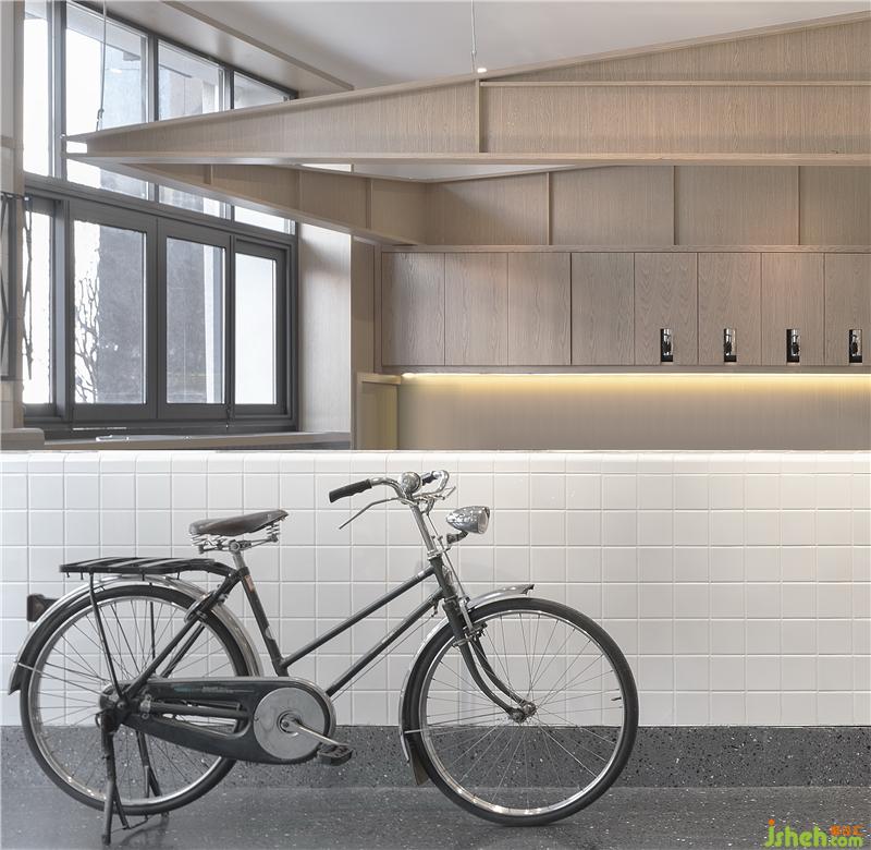 走进店内,目光所及充满了旧火车站的气息,一台28老式自行车侧立在门口。隔着各式纹样的花玻璃,看到人影闪烁,以及半遮面的一个大大的时钟。转身向里走,是两个邮筒。在台湾邮筒是成对出现的,有一对邮筒还因为被大风吹弯,模样意外可爱成为台北最热门景点之一。邮筒后就是暖暖茶歇了,干净的小白砖台面,转角处的弧形小白砖,隐约透露着纯朴与精致。黑糖珍珠的雾气袅袅升腾,暖暖的香味弥漫整个茶歇,融合师傅们忙忙碌碌的身影,仿佛排队进站一样的热闹。餐厅设计