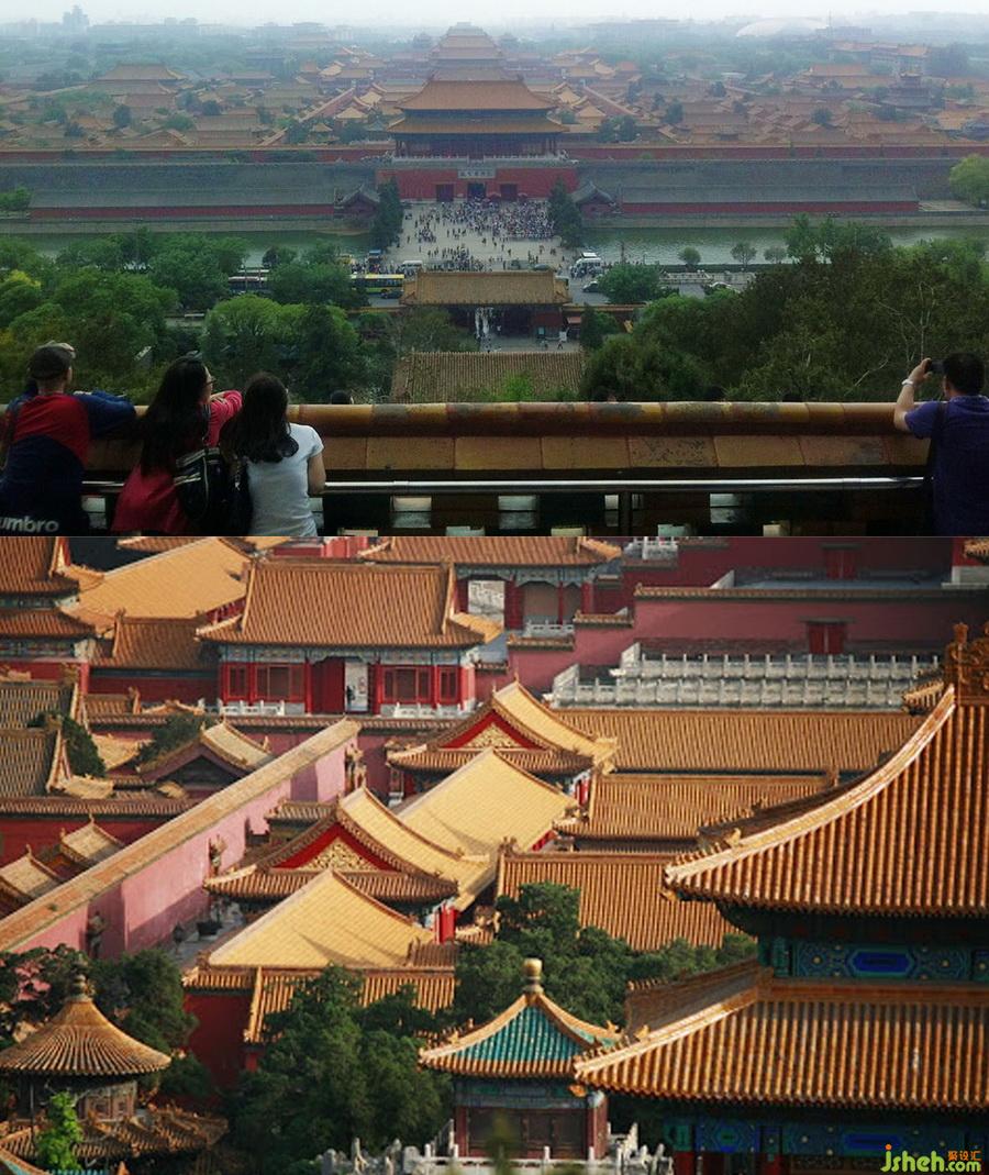 北京最美景观之一,景山眺望故宫。这景观之所以迷人之处,主要是她的飘渺不定,神龙见首不见尾;经常有雾霾缭绕北京城,什么都看不清!有时却又突然烟消云散,晴空万里,让人们可以一窥全貌。One of the mostbeautiful landscapes in Beijing, Jingshan overlooks the Forbidden City. Thereason why this landscape is fascinating is mainly because of its etherealuncertainty, you can spot the divine dragon head but never the tail; you oftensee the haze around Beijing City, and you cannot see anything! Sometimes thehaze disappears, and the sky is clear, so that people can have a glimpse of thewhole picture .