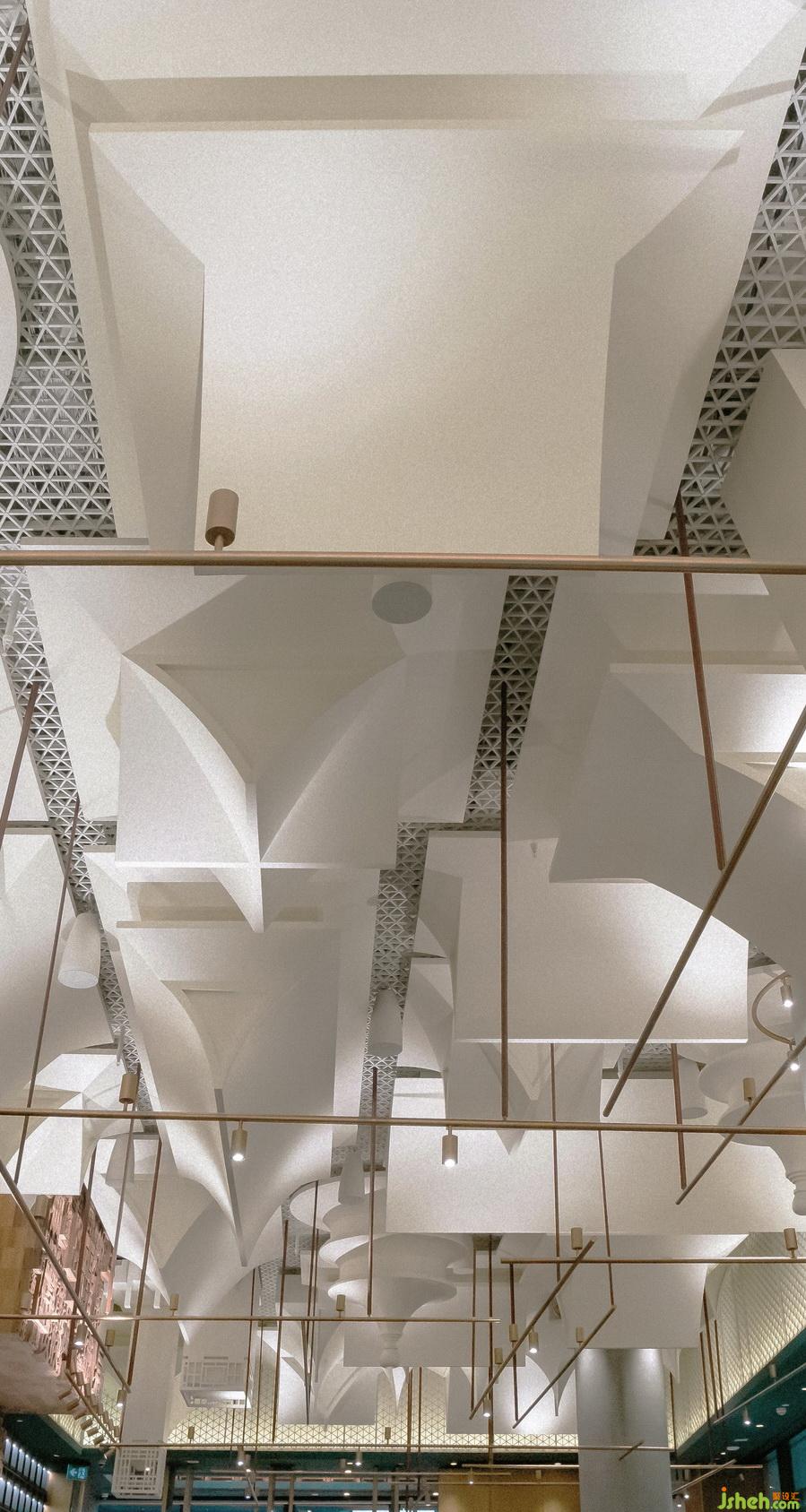 The dining hall of the Quanjude Vancouver store is full of upside-down Beijing buildings. The concept comes from looking at the Beijing Forbidden City complex from Jing shan (The mountain is behind the Forbidden City). There are the Palace Museum and Temple of Heaven, and many contemporary buildings in Beijing. Most of the buildings you can find and name. Why are these buildings upside down? The designer tried to use the custom of "Fu" to reverse the word "Fu has arrived!" into "the meaning of the connection between overseas and hometowns". Design Director Lee Hsuheng said, ” I most hope that people who come to Quanjude Vancouver store will say a few words: Beijing is here! Beijing is here! Let everyone who comes here experience the strong Beijing flavor, When the Chinese arrive here, it is like going home. This is the design intention we most want to achieve.”