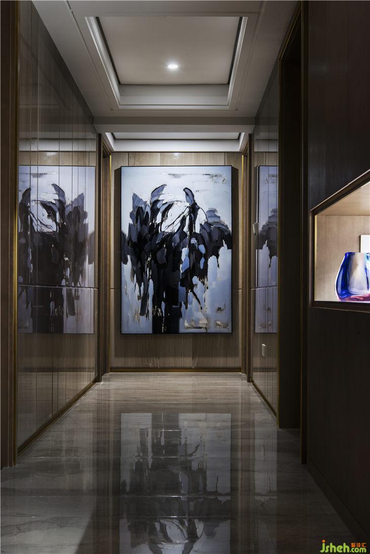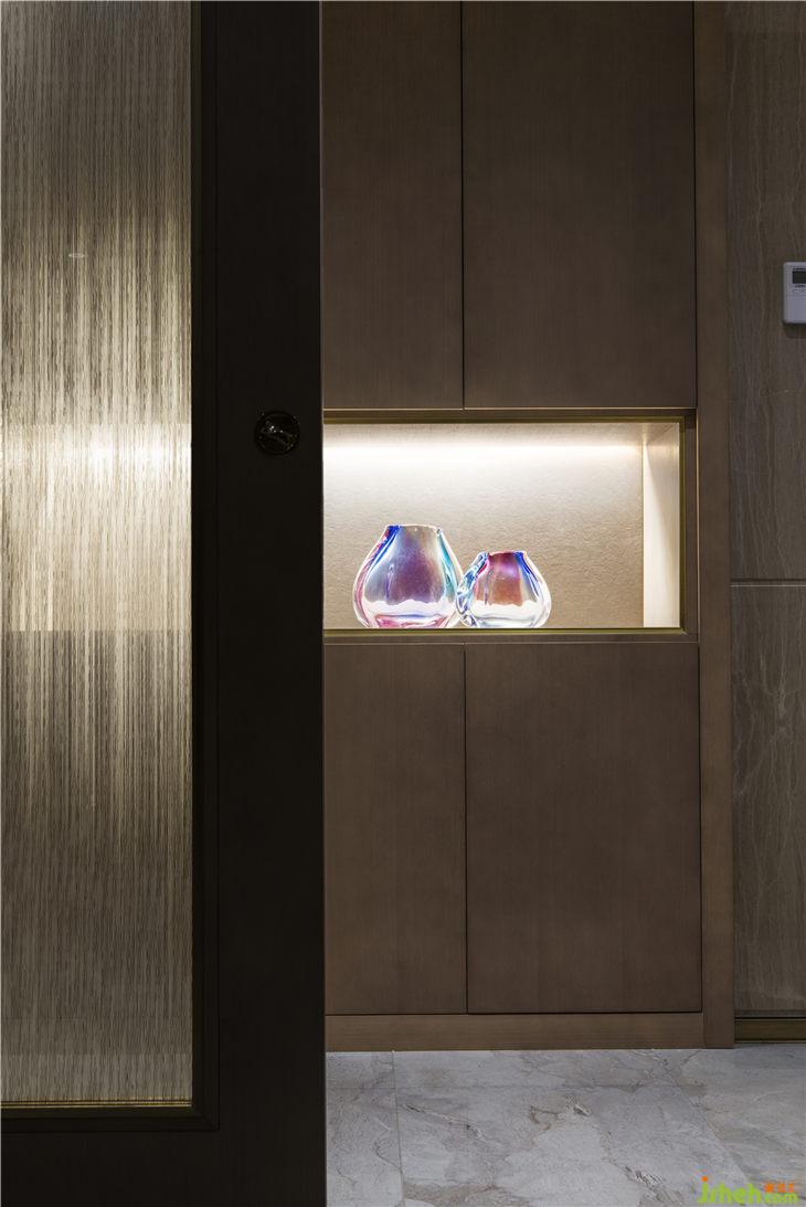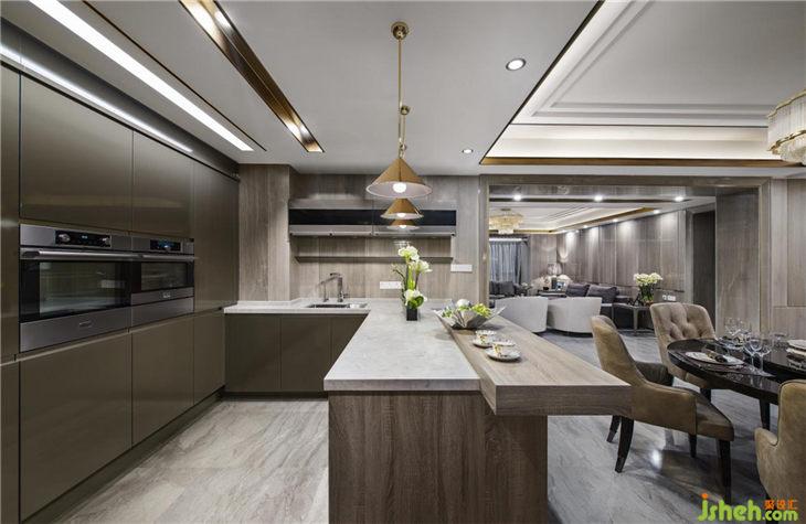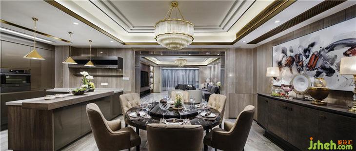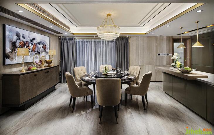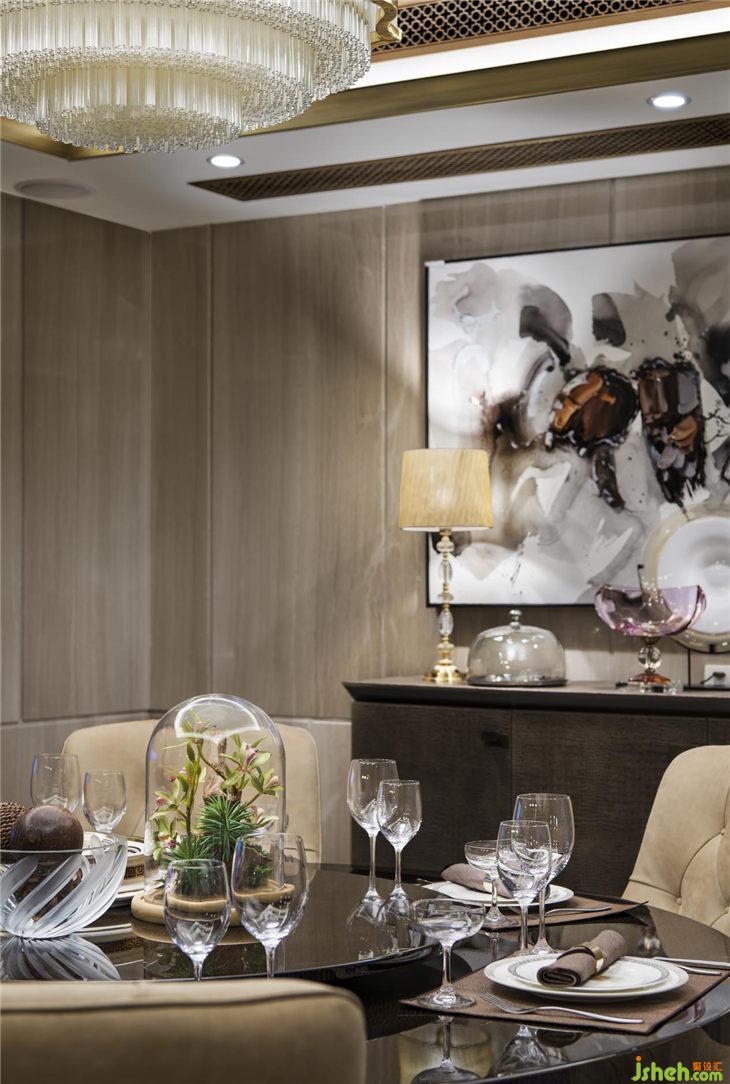 餐厅同样延续客厅空间的颜色基调,营造出贵族式的冷静。如果说,港式轻奢是一种生活气质,那么在这里,轻奢的表达更多见于颜色的冷处理之上。