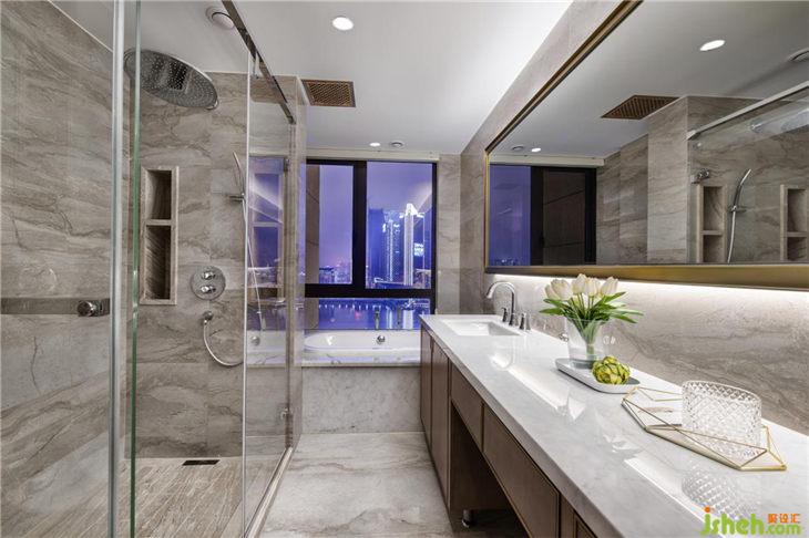 只有领会一种风格的精髓,才能对其进行自如的演绎。卫生间同样延续简洁而充满张力的设计手法,在卫浴设备选材上独具匠心,褪去尘世的喧嚣,当夜幕来临之际,在这样的环境中陶情冶性,放松心情泡澡、沐浴,欣赏婀娜旖旎的闽江夜景,给人身心愉悦之感。