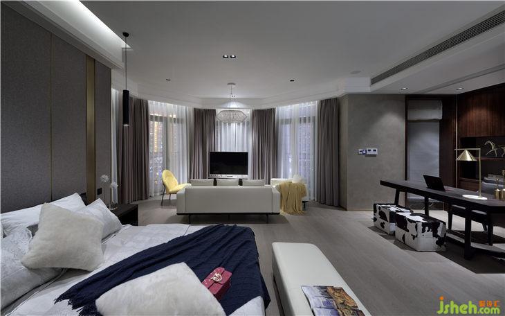好的设计是将艺术变成生活的舒适感,被触碰,被感知。卧室作为个性私密的专属空间,借助低纯度的灰色作为主要基调,配合柔和的咖色铺设出了家的温暖底色和温馨氛围。
