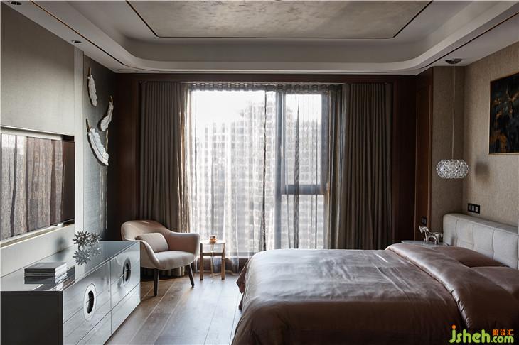 通过楼梯动线指引,来到二楼,空间布局上最引人注目的是一间超大主卧。