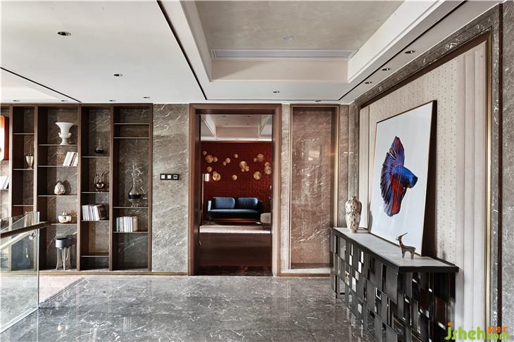 为了让软硬装和谐统一,本案设计师李迅先生,在硬装空间的塑造阶段,非常关注造型细节的设计,与后期家具调性和材质的呼应。精选在视觉和触感上,与家具设计元素,衔接性强的珍贵木材,并创造性地运用真丝、亚麻、羊绒等珍贵面料,和黄铜等贵重金属饰条,搭配质感晶润的大理石、进口砖等材质,升华空间的精致度,使软硬装完美融合,互相成就,将整个空间塑造成集奢华与高质感于一体的艺术品。