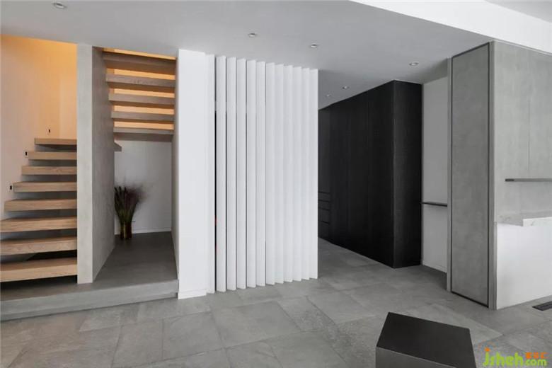 只是,看似干净的空间气息里,界面处理却有着律动的设计;比如门厅的格栅、线条的对应关系,或是楼梯间的部分,都体现出空间呼吸的韵律感,如同音乐家-巴赫的作品,既有结构严谨的美感,也有活泼、灵动的生命力,平衡有序、律动这两者的关系。