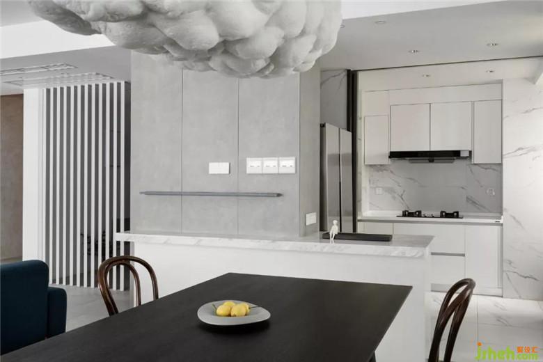 大餐桌除了用餐,还是娱乐、玩耍、手工的多功能场域;而紧邻厨房的位置,让妈妈在做饭时也能看顾小孩。