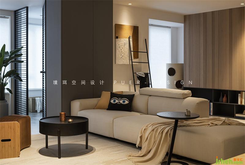 本案的屋主是两人和一只猫:作为商务精英的他有着缜密的逻辑思维,对一切加以审视消化,希望家里整体风格硬朗冷峻;而作为老师的TA随遇而安,希望家的氛围更为舒适温暖。设计师以空间为容器,开放接纳两人的理想生活场景,让理性和感性共生共存,给予两人自由和谐的居家体验。