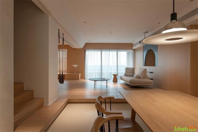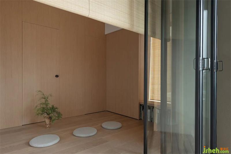 再延伸至露台,一间半开放的茶室,与露台连接出室内外的空间体验,这里便是以待客为主的中心。惬意的午后,阳光作伴,邀上三两好友,聊天喝茶,静静享受当下的美好。