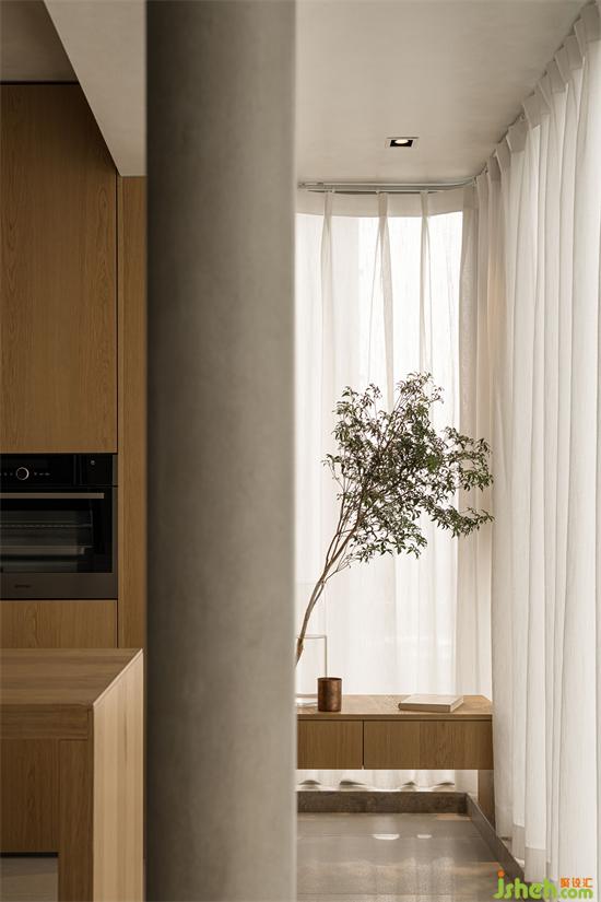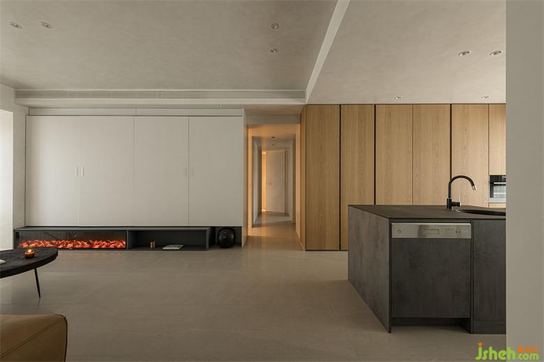 家人在这相互连通的客、餐、厨空间之间产生生活互动,洄行的动线,以开放取代封闭、以明朗置换幽暗,串联起空间的节奏。