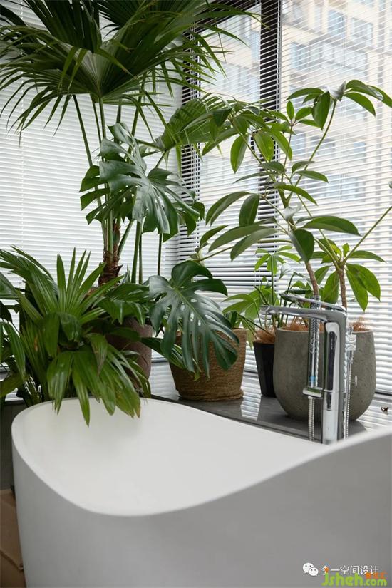 日升而起,日落而息,用横轴划分的左右分区,将东面全部给了生活。尽最大尺度的飘窗台给了主卧观景的同时又保证了起居行为上的品质;进口床与床品建立了高品质睡眠的装修设计保障,充足的衣帽与收纳给了一个干净的家,温暖的灯光缓亮,身躺森林系环境下的浴缸,这是一天完美的句号。