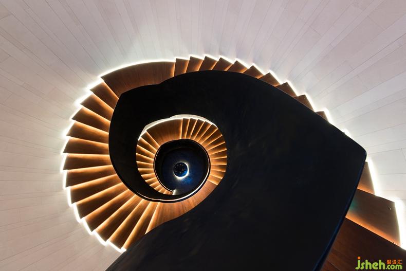 玳瑁般瑰丽的楼梯似浪花翻卷。