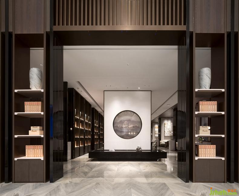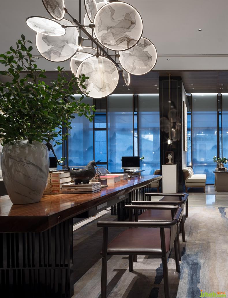 海纳府的意寓与门口的《溪山行旅图》相互呼应。深圳设计公司画作之中,山顶丛林茂盛,山谷深处一瀑如线,飞流百丈,展现雄伟磅礴气势。海纳也广阔,容下溪山瀑布的磅礴,不足挂齿,巨峰壁立、树木茂密也抵挡不了海纳的浩然之气。