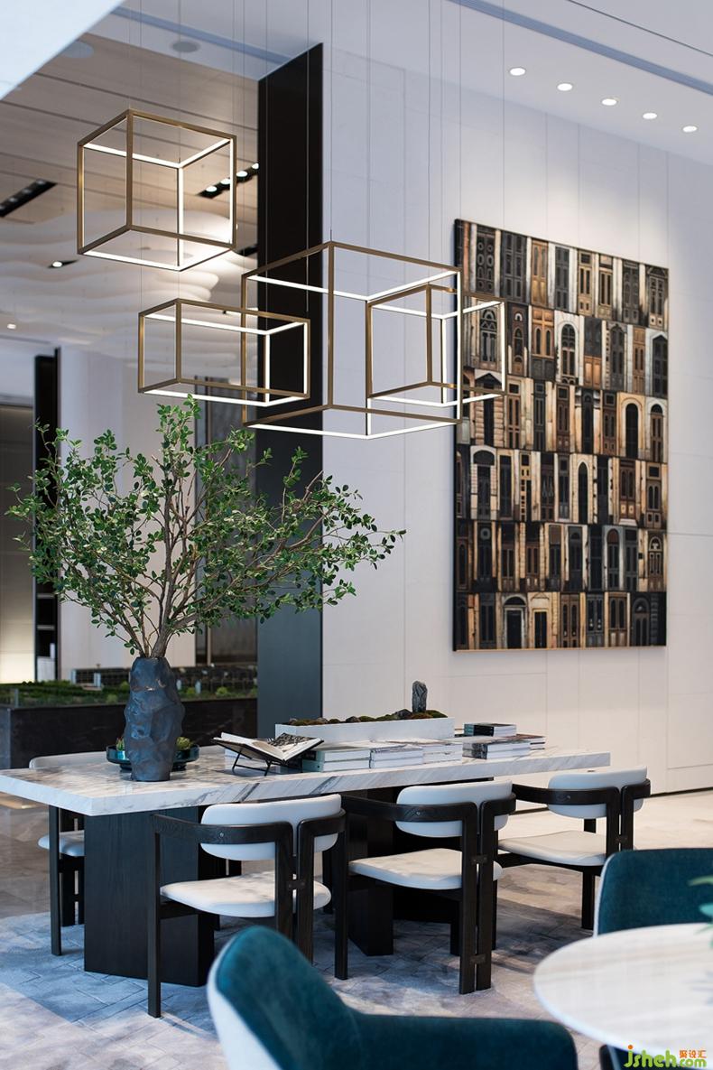 用不规则的线条与随性生长的绿植打造出一种流动感,打破空间的呆板,寓静于动,使用大量与室外蓝天相契合的材质与肌理,令室内更立体化。