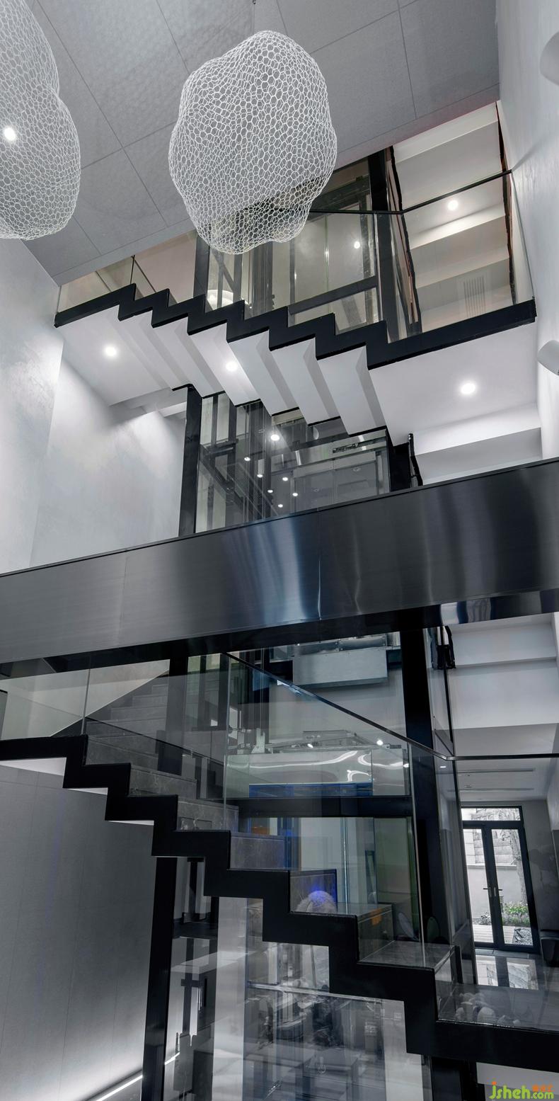设计主材:鱼肚白大理石、安卡拉灰大理石、欧亚木纹大理石、黑色大理石、钢化玻璃、夹丝玻璃、拉丝镜、黑色拉丝不锈钢、厚钢板、树脂板、实木复合地板、布艺硬包