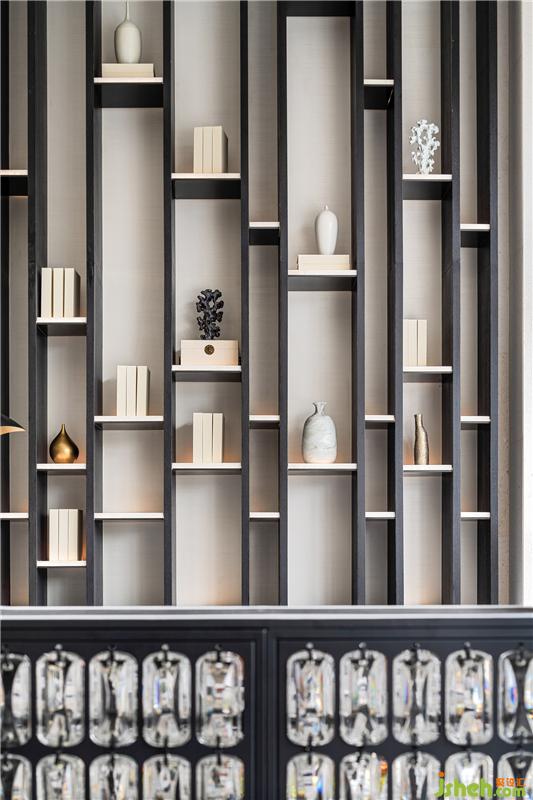 福州脱胎漆器,被誉为“珍贵黑宝石”和“东方珍品”,设计师将福州漆器植入空间中,从门廊的艺术装置到水吧台的背景墙,甚至一整面墙体艺术品展示,皆以福州脱胎漆器为形之主体,用现代设计的解构方式展示传统文化艺术的瑰丽,在空间中产生一种新的对话。