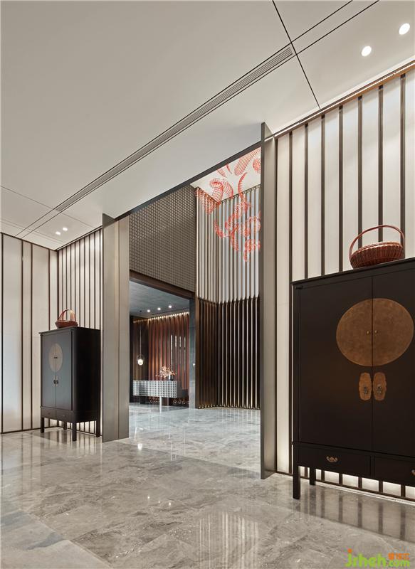 与接待厅形成鲜明的明暗对比的艺术过厅,使人们进入后,有豁然开朗之感。古铜钢和透光材质交织而成的墙面,阴阳相生一气呵成,呈现出尊贵府邸的不凡气度。装修公司
