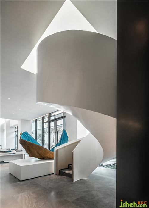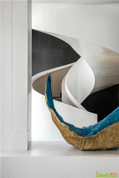 旋转楼梯与艺术装置是舞动的“精灵”,造型和线条展现力量与灵动。艺术品为空间的空白填补想象,在具象与抽象之间,传递价值。