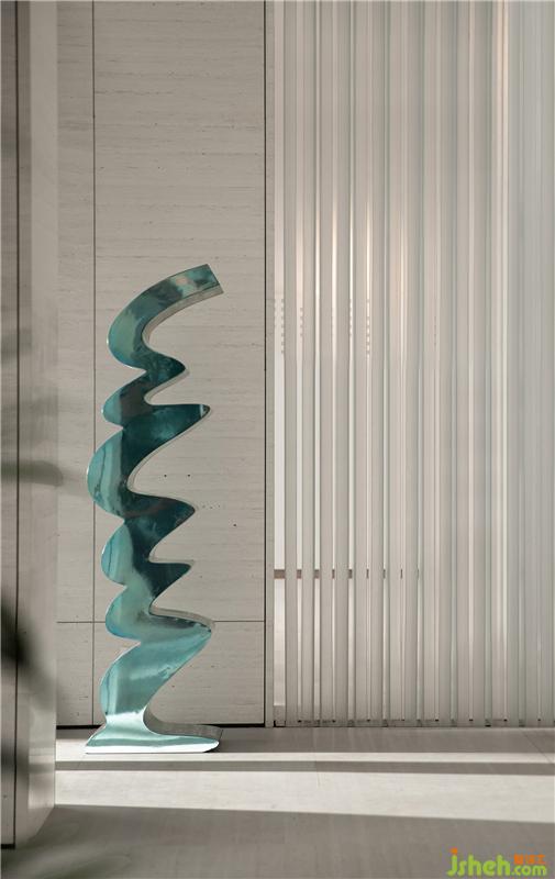 落地窗旁,取自渭河水意象的黑陶雕塑,记录着这片土地悠久深远、源源不断的历史文脉,也象征着生生不息的华夏文明。