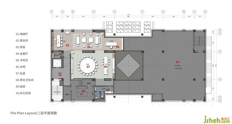 在李益中看来,艺术是自由的,是一种无上的精神财富。在城市化进程升级的今天,装修设计要结合艺术的语言与表现形式,去激发人对不同时间段生活的记忆共鸣或向往心境,让艺术为空间、为生活增值。因而,在二层空间中,装修设计在简洁的意表下藏纳丰赡的审美艺术与人文精神,围合出一处可供深度交流、感知艺蕴的静谧场所。