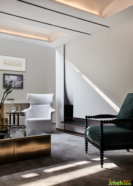 “我一直在寻找一种居住的味道来适合主人的身份,因此空间的格局和成色上是兼收并蓄、海纳百川的,可以是东方的,也是西方的,是历史的,也是当代的,“设计师说。