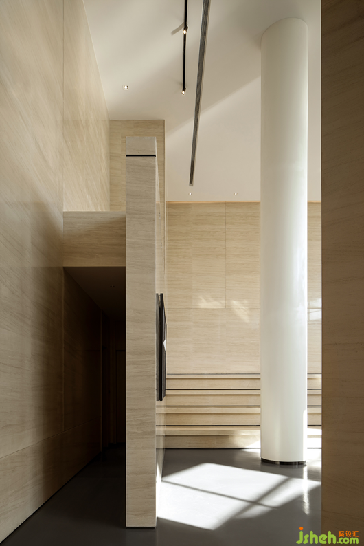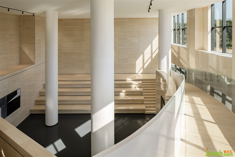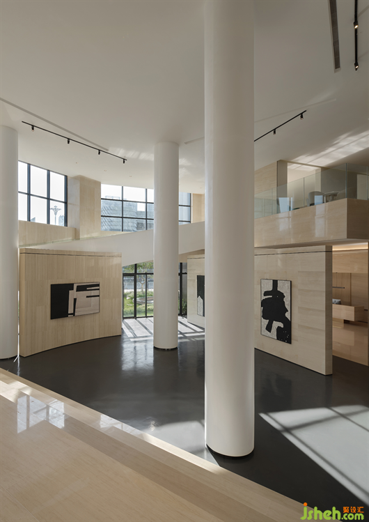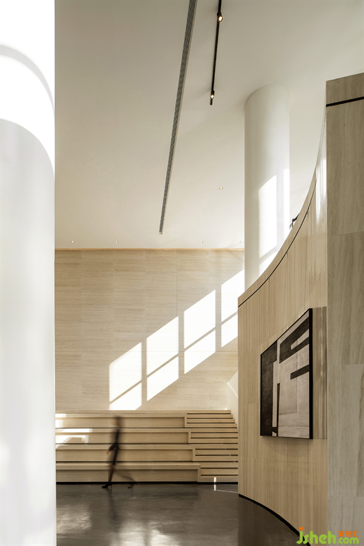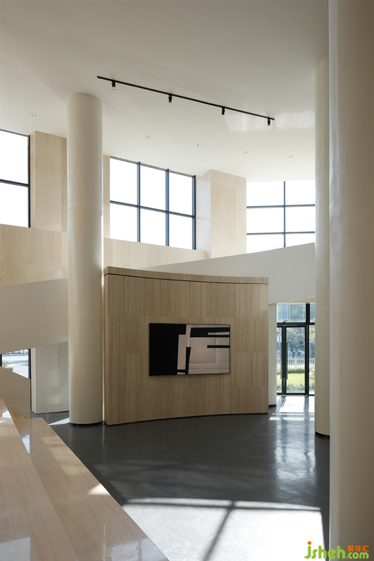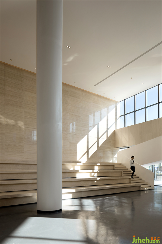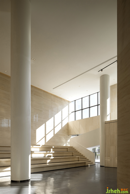 在上午时分,阳光透过玻璃幕墙,漫入空间,在此驻足停留,在此交织变幻,空间的质感得以体现。
