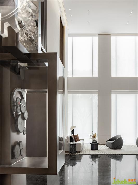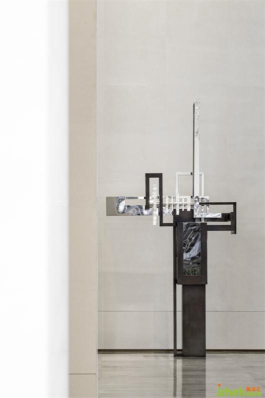 前厅艺术装置,开启空间时光印象的第一幕,简洁干净的结构,用最少的干预赋予空间想象。