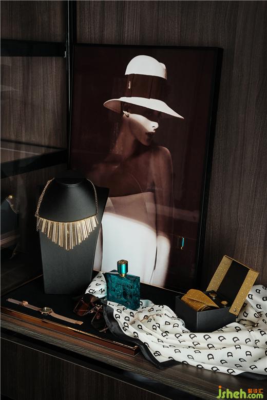 主卫采用深色系石材,精心挑选的宝格丽大理石,被打造成洗手盆和置物台,别墅装饰一体成型视觉上更为整体,品质感十足。