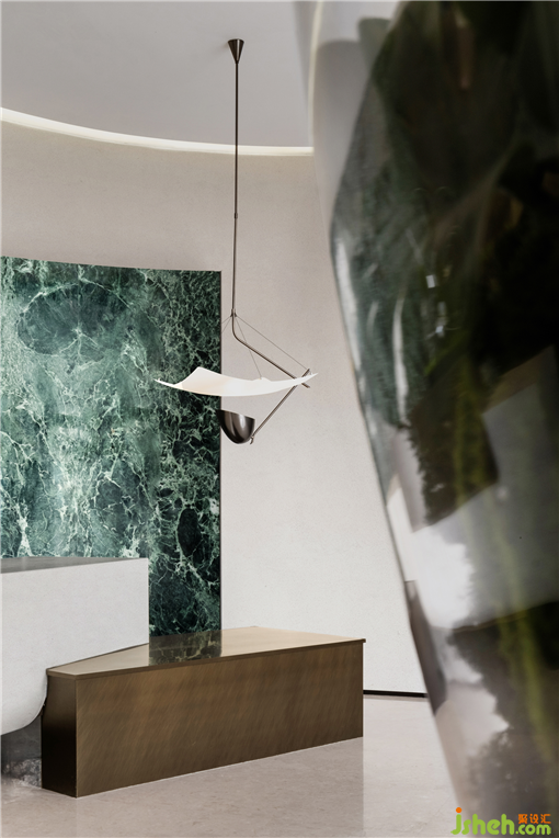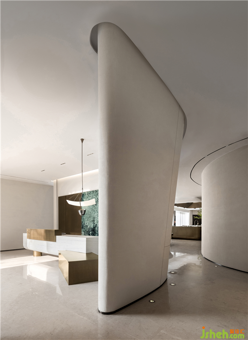 售楼中心设计空间的结构与立面与建筑型体相互呼应,其中建筑设计中的弧形线条设计语汇延展至室内。