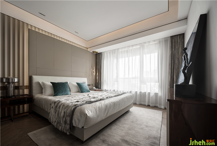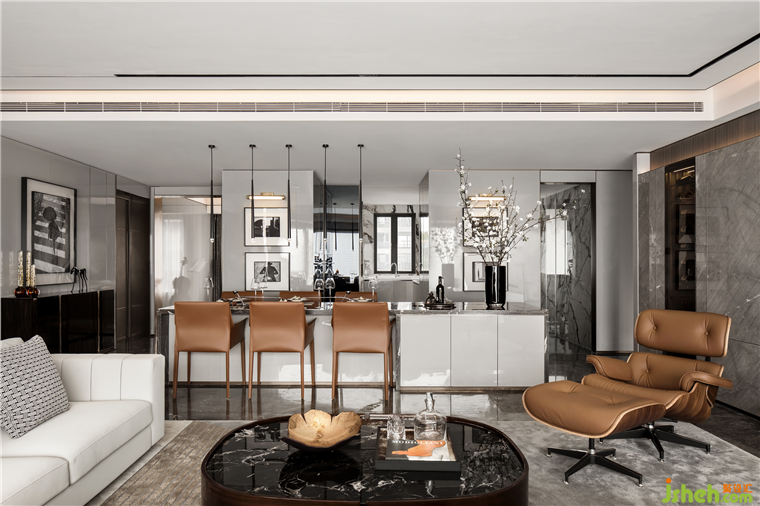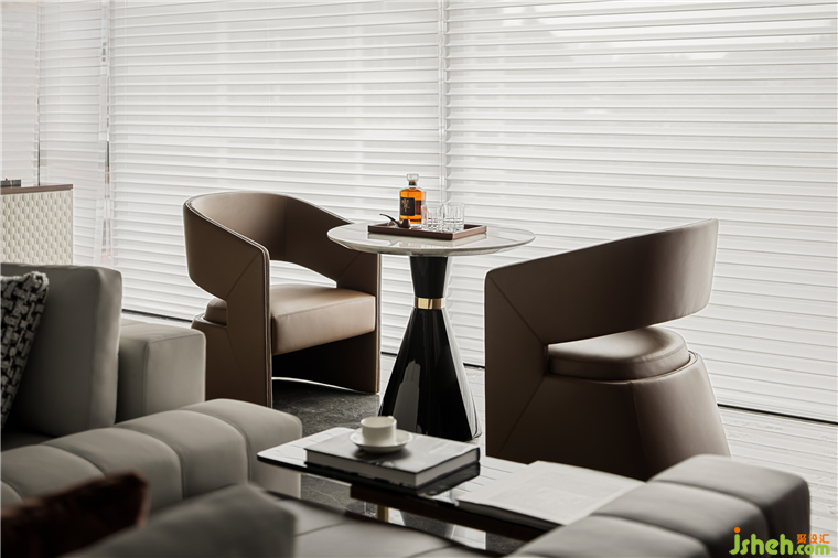 样板房设计在色调上没有浓墨重彩的渲染,是以最经典的色系调和,令金属、皮革、石材等多种元素协调相处,以永不过时的中性色,来演绎一种低调的奢华。