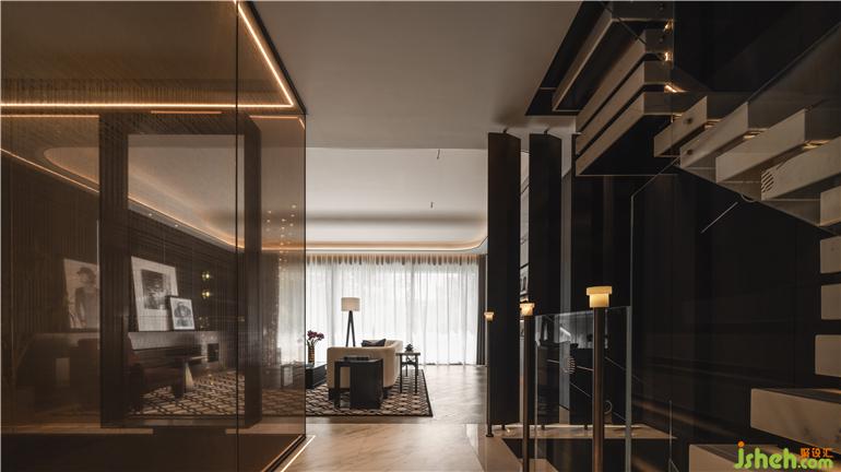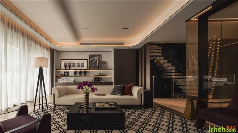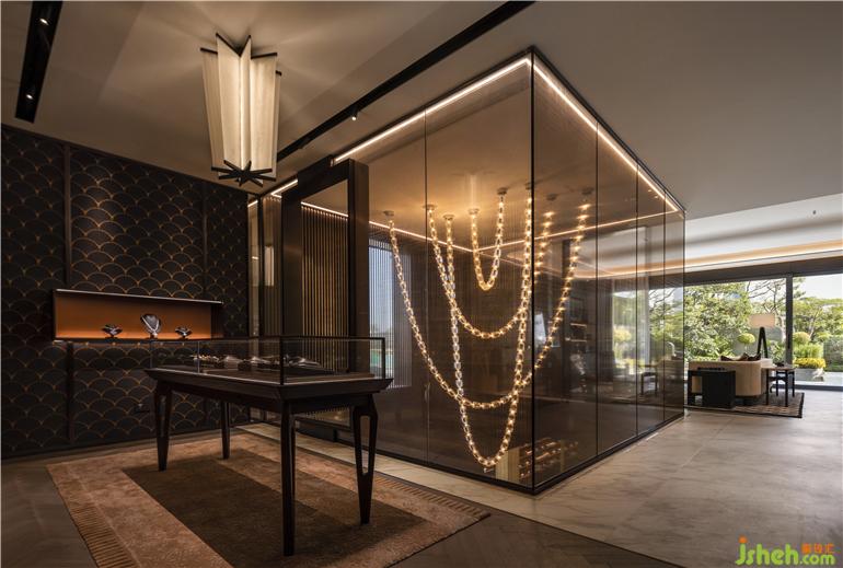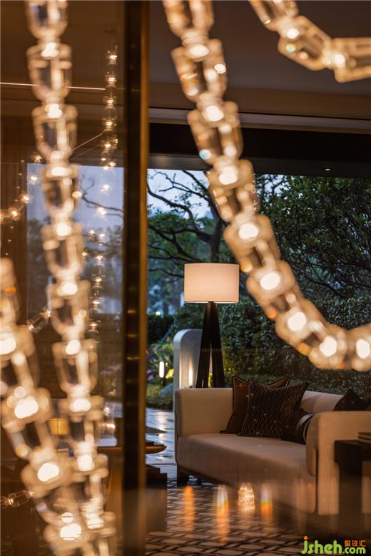 中海寰宇天下会馆设计以偏暖色的柔和灯光,为整体高雅的室内减少距离感,柔和的氛围灯光促进建立促进交流的舒适气场。
