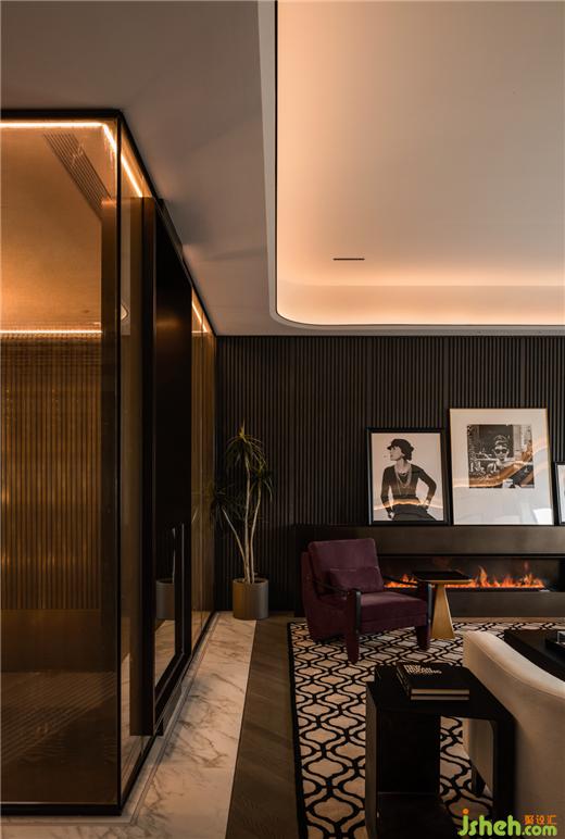 中心区,璀璨的水晶吊灯、经典黑白摄影艺术挂画、鎏金的装置壁炉、时尚优雅的家具共同于同一画面,中海寰宇天下会馆设计如同置身于繁华的东方巴黎,洋溢着摩登、高贵气韵和前卫的态度。