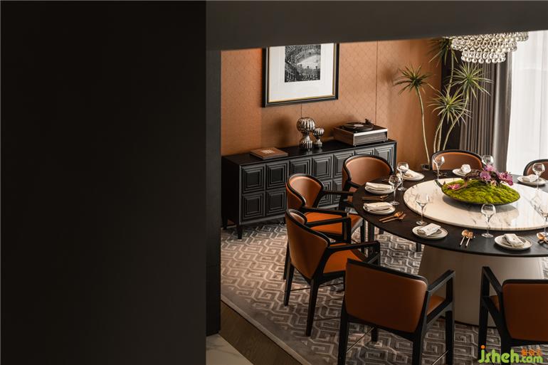 室内家具笔直流畅的线条,精致细腻的材质纹理,搭配着魅力橙的背景和棕的点缀舒适与奢华并存的理念。