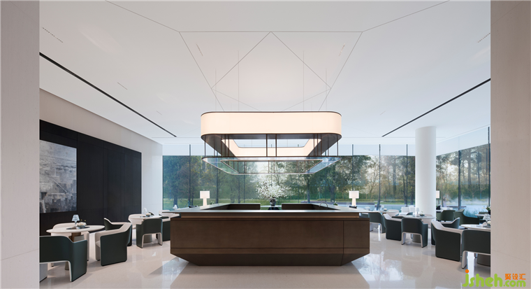 形态间的成角对比,光的结合,拥有雄浑的力量美与流动的气韵,组建出一个典雅与力量并存的空间。
