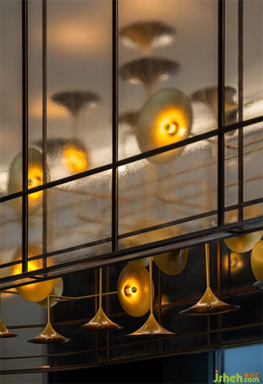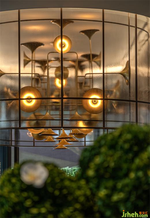 水吧区主灯——“时代之声”,灵感源于曾经风靡上海的留声机,是海派音乐的重要代表,当时城市高端消费群体的一个象征,极有时代的印记。