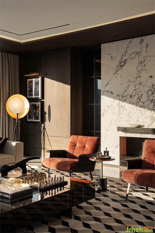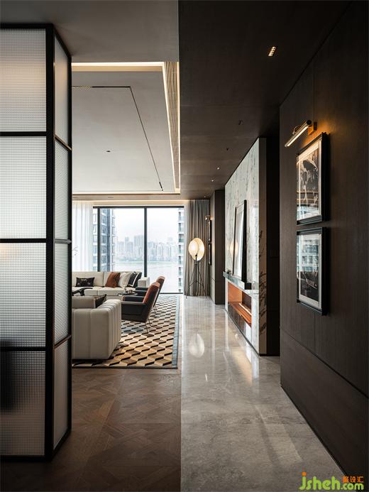 光线的运用,材质的选择及墙壁的装饰都经过精心策划,样板房设计以营造一种深邃而具有层次感的艺廊格调。