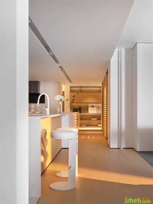 在李友友看来,家永远要做的是,视线的对流、动线的回流、亲子关系的互动。当女主人在9米长的厨房岛台上准备餐食时,她可以随时与坐在客厅或书房的男主人聊天互动,同时也可以照看在多功能房或儿童房的女儿。家庭成员之间的视线交流畅通无阻,而不再被传统分割孤立的家居结构所限制。