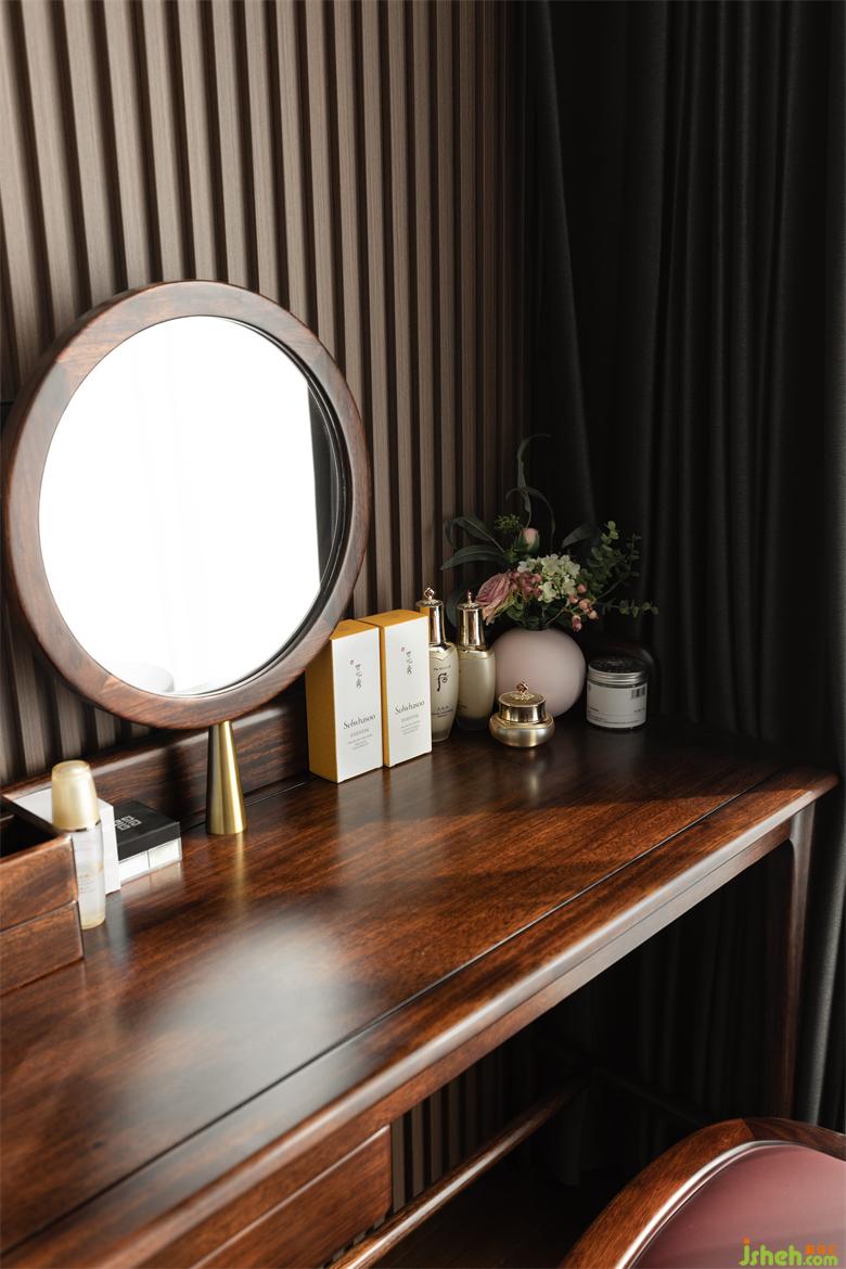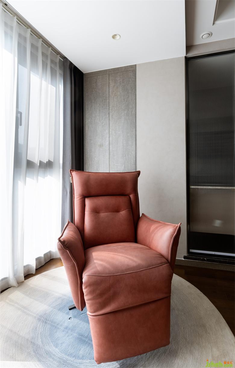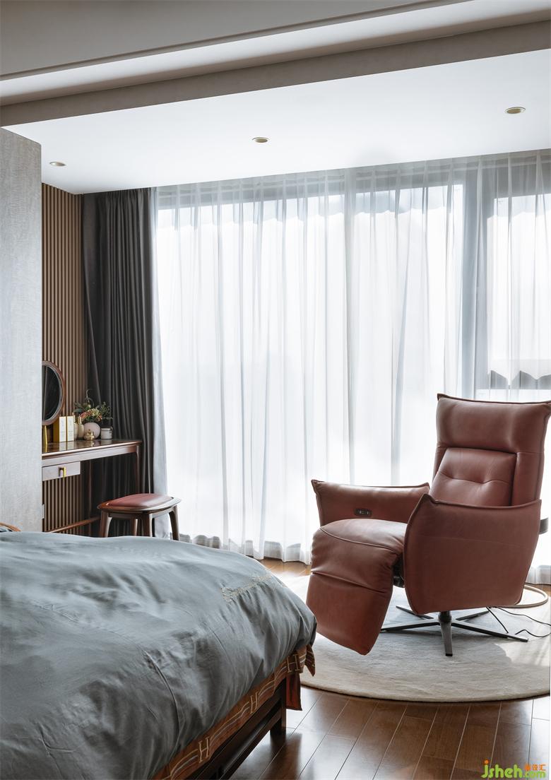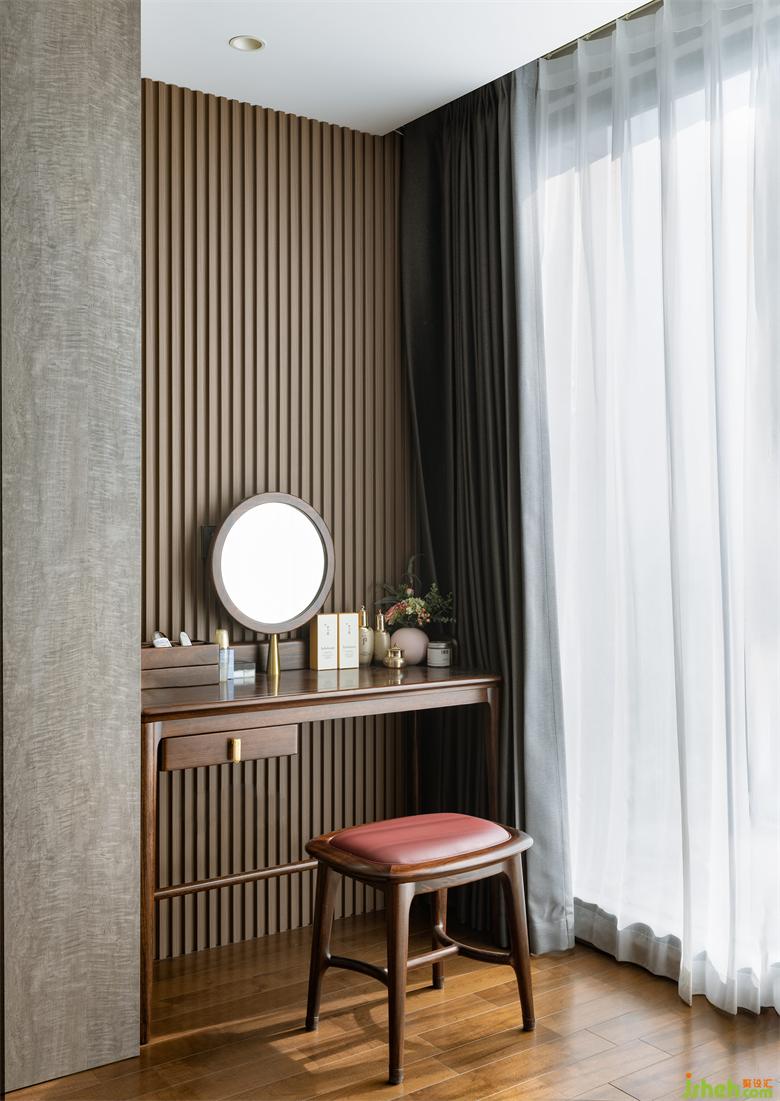在主卧与主卫使用一块长虹玻璃,室内设计师在满足采光的同时更显新中式味道,满足实用与审美。长虹玻璃隔断,藏拙的同时,原本昏暗的二楼因为良好的采光而更加美观。