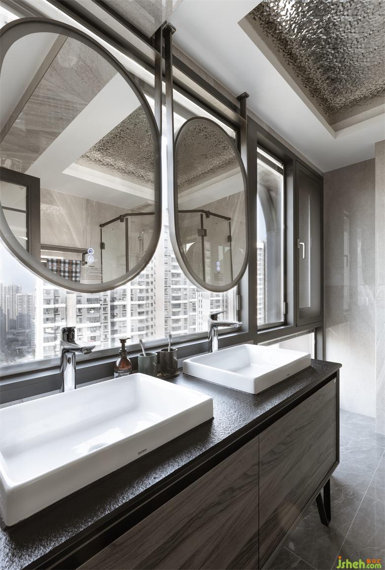 二楼改造后的公卫,规划后拥有一流的采光,室内设计师双盆设计即便洗漱在高峰期也不会显得局促拥挤,使得主卧也能拥有单独的卫生间,更好地满足住户的洗漱需求,也是对空间利用率的提升。