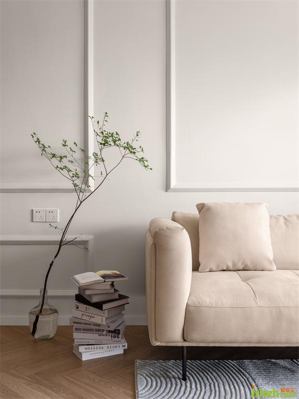 明亮的窗户采光,干干净净的家具,无论是坐下来休憩,还是躺卧着入眠,安静的内心总是让人愉悦的。阳台与客厅之间设计了小边拱型过渡,笔直的石膏线与圆润的弧拱刚柔相济。